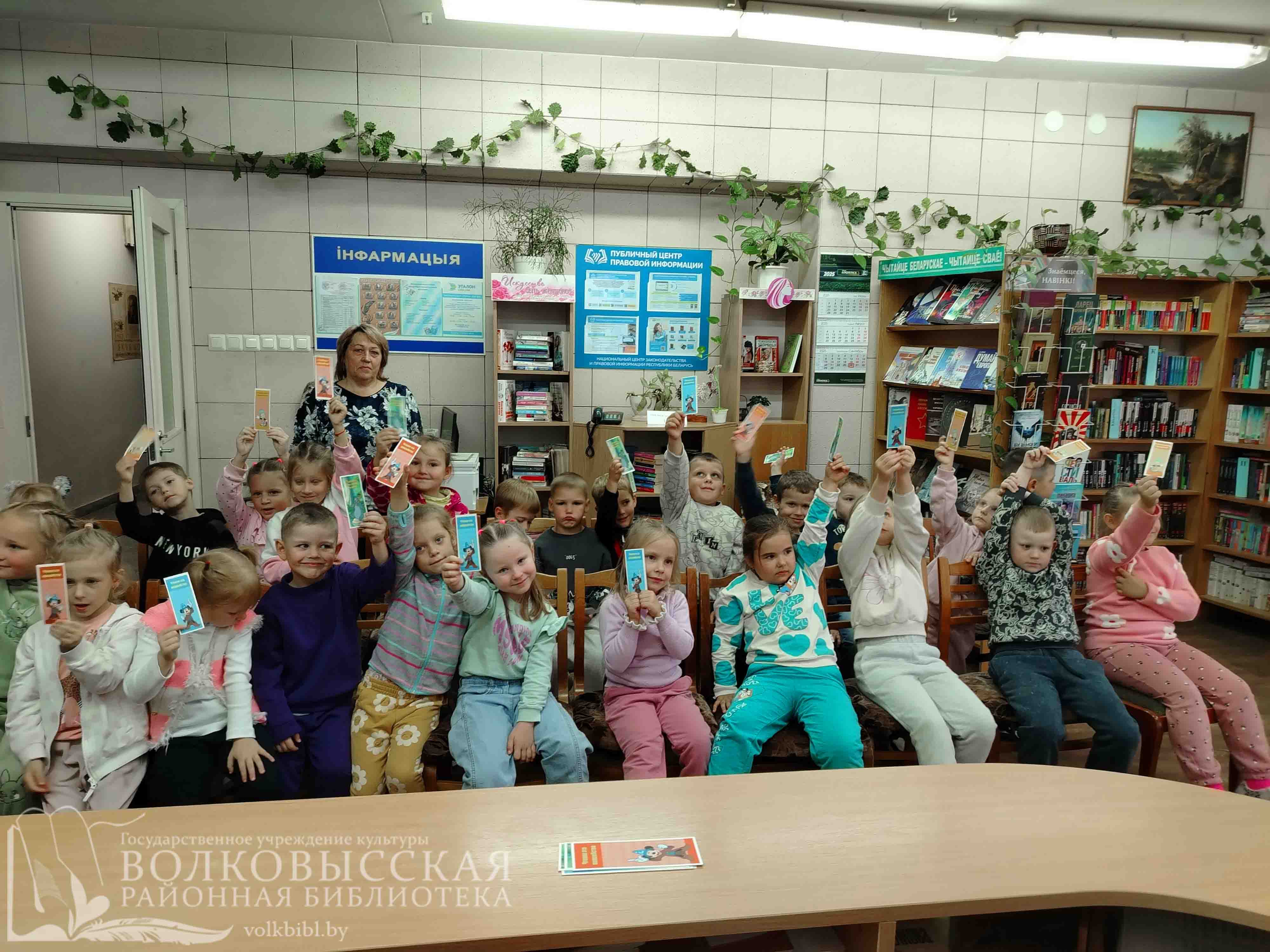 30 сентября на экскурсию в филиал «Росская городская поселковая библиотека» пришли ребята старшей группы ГУО «Росский детский сад». Библиотекарь рассказала детям, что такое библиотека и как давно они существуют, познакомила малышей с правилами пользования библиотекой и обращения с книгой, рассказала об электронном читательском формуляре. Дети узнали, что книги – это самое ценное в библиотеке, и у каждой из них есть своё место на полке, чтобы любой желающий мог легко найти её. С большим интересом воспитанники посмотрели мультфильм про библиотеку “Три кота”, а затем дружно угадывали сказочных героев в электронной игре “В гостях у сказки?”. Ребята познакомились с детскими книжками и журналами. На память об экскурсии в библиотеку малыши получили книжные закладки.