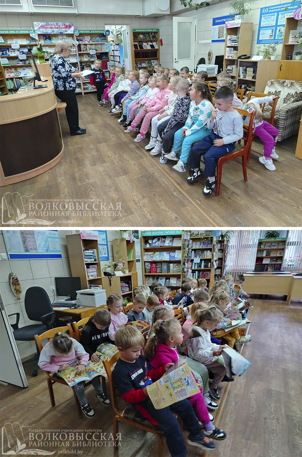 30 сентября на экскурсию в филиал «Росская городская поселковая библиотека» пришли ребята старшей группы ГУО «Росский детский сад». Библиотекарь рассказала детям, что такое библиотека и как давно они существуют, познакомила малышей с правилами пользования библиотекой и обращения с книгой, рассказала об электронном читательском формуляре. Дети узнали, что книги – это самое ценное в библиотеке, и у каждой из них есть своё место на полке, чтобы любой желающий мог легко найти её. С большим интересом воспитанники посмотрели мультфильм про библиотеку “Три кота”, а затем дружно угадывали сказочных героев в электронной игре “В гостях у сказки?”. Ребята познакомились с детскими книжками и журналами. На память об экскурсии в библиотеку малыши получили книжные закладки.