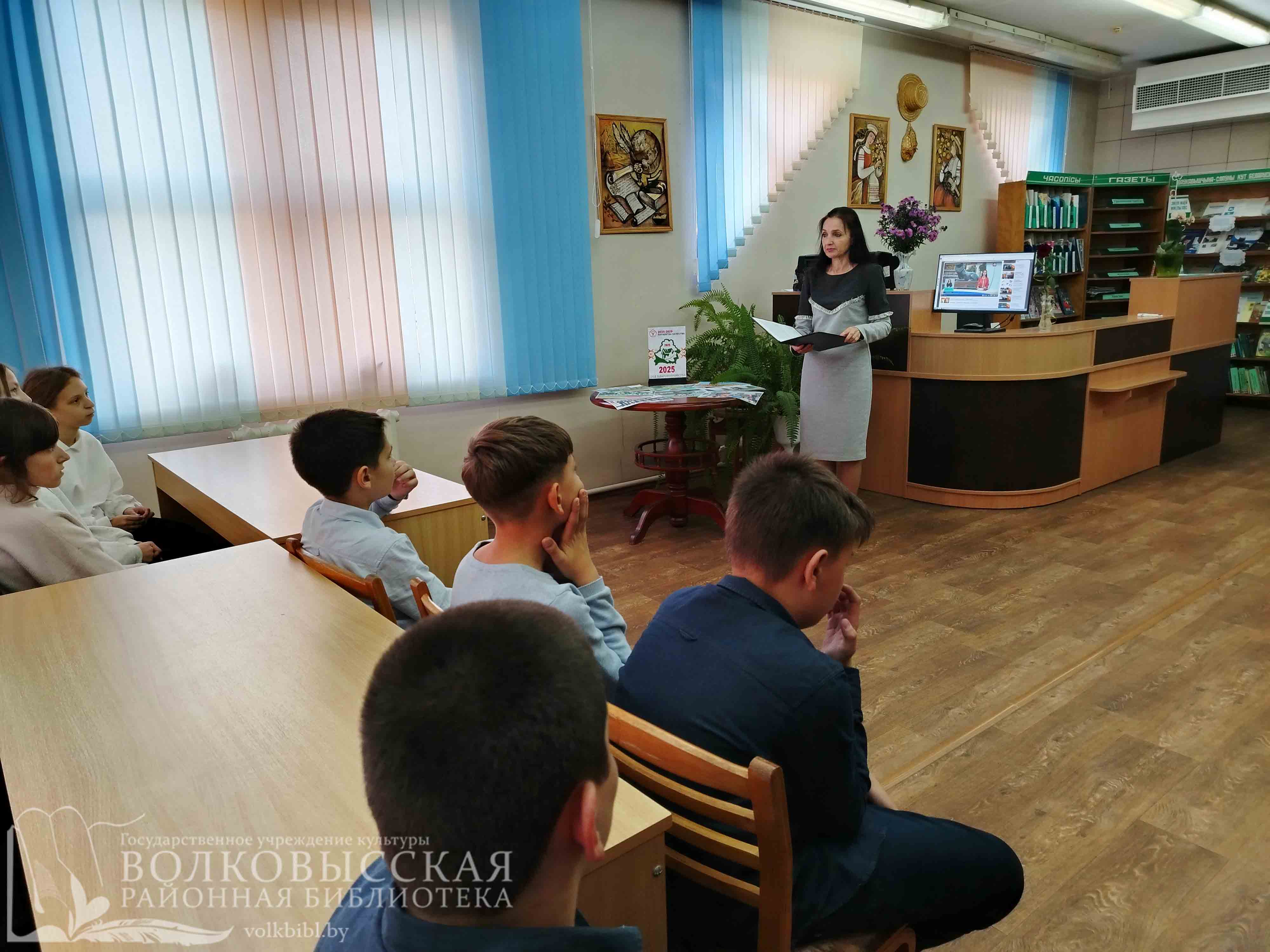 В ходе беседы библиотекарь рассказала ребятам о мероприятиях по благоустройству в Республике Беларусь, интересных фактах по озеленению городов, переработке отходов, инвестициях в качество воды.