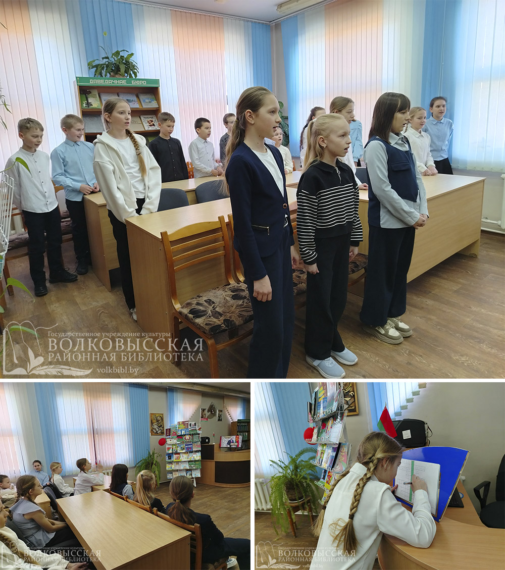 Школьники узнали, из каких разделов и глав состоит главный закон государства, а также внимаю учащихся был предложен просмотр видеоролика «Конституция Республики Беларусь», размещенный на детском правовом сайте mir.pravo.by. В ходе мероприятия ребята исполнили гимн, вспомнили символы своей страны и закрепили полученные знания, приняв участие в правовой викторине «Конституция Республики Беларусь» и, разгадав кроссворд «Основной Закон нашей страны».